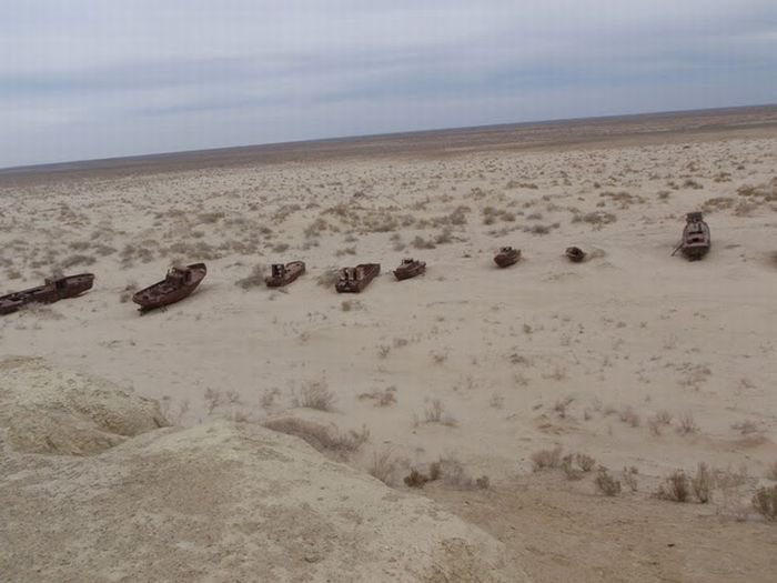 Ketika Laut Aral mulai surut, sebuah kanal sepanjang 20 kilometer digali. Tapi usaha itu sia-sia. Laut bahkan surut lebih jauh, kuburan kapal tumbuh di sekitar kota, bandara ditutup, beberapa nelayan pergi, beberapa orang meninggal, beberapa orang beralih profesi menjadi pedagang dan beberapa menjadi peternak unta.